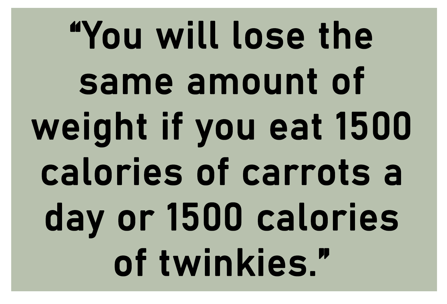 If you’re strictly talking about weight-loss, it really doesn’t matter where the calories come from. Dr. Mark Haub, a nutrition professor at Kansas State University, set out to prove this and consumed mostly junk food while maintaining a calorie deficit. He called it the “Twinkie Diet,” and he lost 28 lbs (source). I know you’ve been fed lies before. Please trust me on this.
